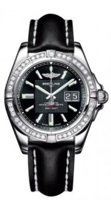 Model: A49350LA/BA07-428X - CASE = [Material:Polished Stainless Steel], [Case Diameter:41], [Case Thickness:14mm], [Bezel:Set with 40 Diamonds, Uni-Directional Rotating], [Case Back:Solid], [Water Resistant:300 Meters / 1000 Feet], [Crystal:Scratch Resistant Sapphire], DIAL = [Color:Ivory Black with Index Hour Markers and Large Double Date at 3], MOVEMENT = [Type:Automatic Self Winding Chronometer], [Crown:Screw Down], BAND = [Clasp:Tang Buckle (also available with deployment buckle)], [Type:Black Calfskin Leather], (Usually ships in 1 to 2 weeks.)