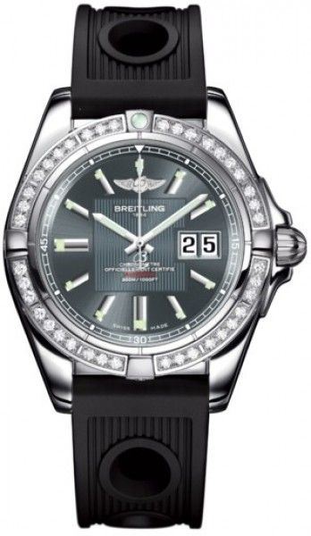 Model: A49350LA/F549-ORD - CASE = [Material:Stainless Steel], [Case Diameter:41], [Case Thickness:14mm], [Bezel:Uni-Directional Rotating with Diamonds], [Case Back:Solid], [Water Resistant:300 Meters/1000 Feet], [Crystal:Scratch Resistant Sapphire], DIAL = [Color:Tomcat Grey], MOVEMENT = [Type:Automatic Self Winding-Chronometer], BAND = [Clasp:Deployment], [Type:Black Rubber], (Usually ships in 1 to 2 weeks.)
