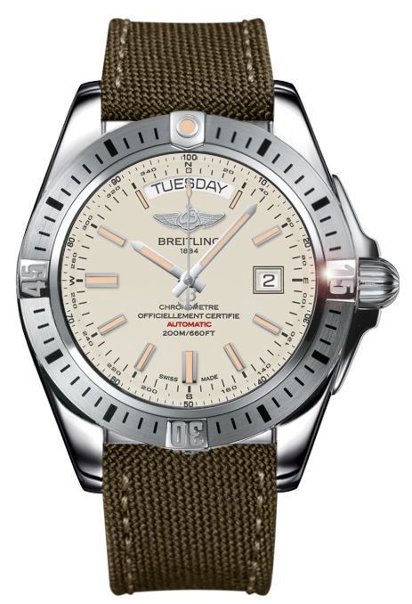 Model: A45320B9/G797-106W - CASE = [Material:Stainless Steel], [Case Diameter:44], [Case Thickness:14.30mm], [Bezel:Unidirectional Rotating], [Case Back:Solid], [Water Resistant:200 Meters - 660 Feet], [Crystal:Scratch Resistant Sapphire], DIAL = [Color:Silver], MOVEMENT = [Type:Automatic], [Crown:Screw Down], BAND = [Clasp:Tang], [Type:Khaki Green], (Usually ships in 1 to 2 weeks.)