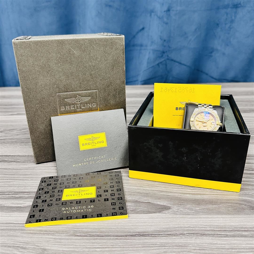 Breitling Galactic factory diamonds, 36mm two tone rose gold and Steel. Beautiful Breitling watch includes factory diamonds and two tone rose gold bracelet. 100% authentic and ready to wear and enjoy!