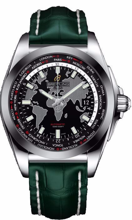 Model: WB3510U4/BD94-749P - CASE = [Material:Stainless Steel], [Case Diameter:44], [Case Thickness:15.30mm], [Bezel:Fixed], [Case Back:Solid], [Water Resistant:100 Meters - 330 Feet], [Crystal:Scratch Resistant Sapphire],; DIAL = [Color:Black],; MOVEMENT = [Type:Self Winding Automatic], [Crown:Screw Down],; BAND = [Clasp:Folding], [Type:Green Alligator Leather],  (Usually ships in 1 to 2 weeks.)