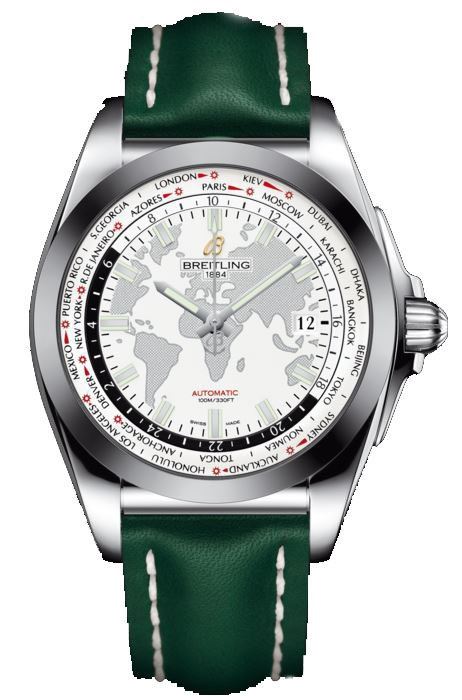 Model: WB3510U0/A777-189X - CASE = [Material:Stainless Steel], [Case Diameter:44], [Case Thickness:15.30mm], [Bezel:Fixed], [Case Back:Solid], [Water Resistant:100 Meters - 330 Feet], [Crystal:Scratch Resistant Sapphire],; DIAL = [Color:Antarctica White],; MOVEMENT = [Type:Self Winding Automatic], [Crown:Screw down],; BAND = [Clasp:Tang], [Type:Green Leather], (Usually ships in 1 to 2 weeks.)