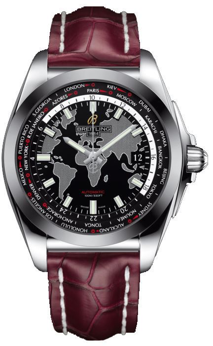 Model: WB3510U4/BD94-736P - CASE = [Material:Stainless Steel], [Case Diameter:44], [Case Thickness:15.30mm], [Bezel:Fixed], [Case Back:Solid], [Water Resistant:100 Meters - 330 Feet], [Crystal:Scratch Resistant Sapphire], DIAL = [Color:Black], MOVEMENT = [Type:Self Winding Automatic], [Crown:Screw Down], BAND = [Clasp:Folding], [Type:Burgundy Alligator Leather], (Usually ships in 1 to 2 weeks.)