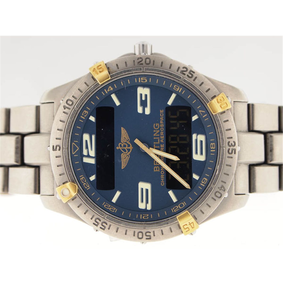 Breitling Mens Titanium and 18k Aerospace. Breitling, Mens, Titanium, 18k Gold, Chronometer Aerospace, Digial and Analog, Deployment Buckle, Swiss Made, Beautiful Condition, Pre-Owned.