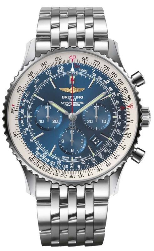 Model: AB012721/C889-443A - CASE = [Material:Stainless Steel], [Case Diameter:46], [Case Thickness:14.6mm], [Bezel:Bi-Directional Rotating], [Case Back:Transparent Sapphire Crystal], [Water Resistant:30 Meters/100 Feet], [Crystal:Scratch Resistant Sapphire], DIAL = [Color:Blue Chronograph], MOVEMENT = [Type:Automatic Breitling 01 (Manufacture)], BAND = [Clasp:Deployment], [Type:Polished Stainless Steel], (In Stock - Ready to ship.)