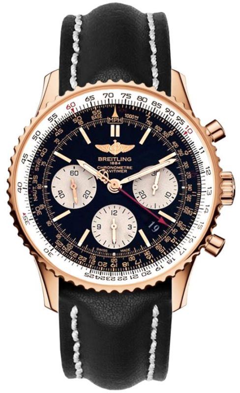 Model: RB012012/BA49-435X - CASE = [Material:18kt Rose Gold], [Case Diameter:43], [Case Thickness:14.6mm], [Bezel:Bi-Directional Rotating], [Case Back:Solid], [Water Resistant:30 Meters - 100 Feet], [Crystal:Anti-Reflective Scratch Resistant Sapphire], DIAL = [Color:Black with Rose Gold Toned Index Hour Markers and Hands], MOVEMENT = [Type:Automatic Chronometer], [Crown:Push In], BAND = [Clasp:Tang], [Type:Black Calfskin Leather], (Usually ships in 1 to 2 weeks.)