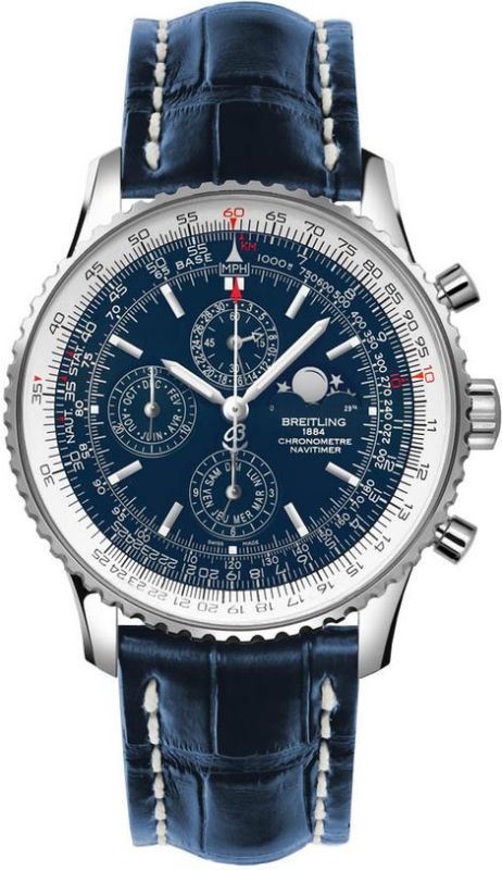 Model: A1937012/C883-747P - CASE = [Material:Polished Stainless Steel], [Case Diameter:46], [Bezel:Bi-Directional Rotating], [Case Back:Solid], [Water Resistant:30 Meters - 100 Feet], [Crystal:Scratch Resistant Sapphire], DIAL = [Color:Blue], MOVEMENT = [Type:Automatic Chronograph, Moon Phase and Day Date Features], [Crown:Screw Down], BAND = [Clasp:Tang], [Type:Blue Alligator Leather], (Usually ships in 1 to 2 weeks.)