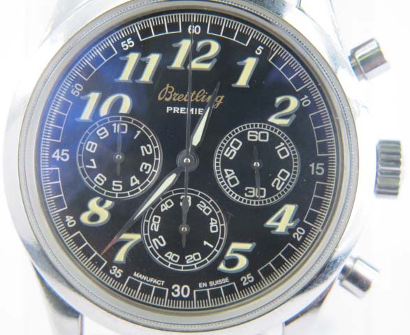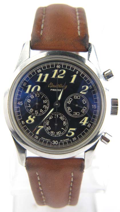 Breitling Navitimer Premier Stainless Steel Leather Strap WatchThe total weight of the Watch is 73.1 grams.The head size is 37 mm in diameter. 13 mm in thickness.The Leather Strap watch is 17 mm.The Length of the watch is 8.5".Stainless Steel.Swiss Made.