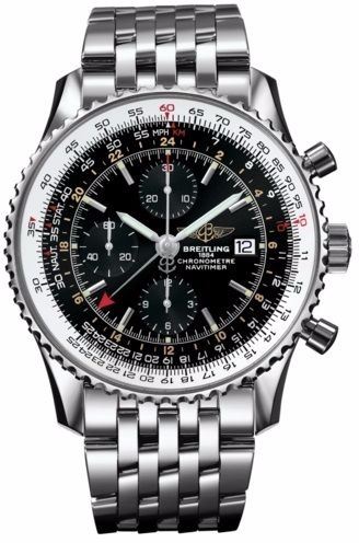 Model: A2432212/B726-443A - CASE = [Material:Stainless Steel], [Case Diameter:46], [Case Thickness:15.5mm], [Bezel:Bi-Directional Rotating], [Case Back:Solid], [Water Resistant:30 Meters/100 Feet], [Crystal:Scratch Resistant Sapphire],; DIAL = [Color:Black GMT Chronograph with Date at 3 and Slide Rule Feature],; MOVEMENT = [Type:Automatic Self Winding], [Crown:Screw Down],; BAND = [Clasp:Deployment], [Type:Stainless Steel], (In Stock - Ready to ship.)