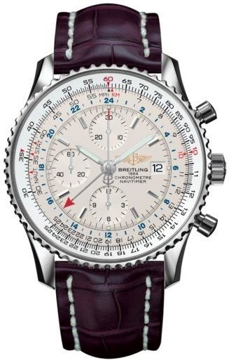 Model: A2432212/G571-750P - CASE = [Material:Stainless Steel], [Case Diameter:46], [Bezel:Bi-Directional], [Case Back:Solid], [Water Resistant:100 Meters - 330 Feet], [Crystal:Scratch Resistant Sapphire],; DIAL = [Color:White],; MOVEMENT = [Type:Automatic Chronograph 2nd Timezone 45 Hour Power Reserve], [Crown:Screwed Down],; BAND = [Clasp:Tang], [Type:Burgundy Alligator Leather], (Usually ships in 1 to 2 weeks.)