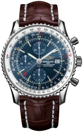 Model: A2432212/C651-756P - CASE = [Material:Stainless Steel], [Case Diameter:46], [Bezel:Bi-Directional], [Case Back:Solid], [Water Resistant:100 Meters - 330 Feet], [Crystal:Scratch Resistant Sapphire],; DIAL = [Color:Blue],; MOVEMENT = [Type:Automatic Chronograph 2nd Timezone 45 Hour Power Reserve], [Crown:Screwed Down],; BAND = [Clasp:Tang], [Type:Brown Alligator Leather],  (In Stock - Ready to ship.)