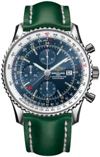 Model: A2432212/C651-190X - CASE = [Material:Stainless Steel], [Case Diameter:46], [Bezel:Bi-Directional], [Case Back:Solid], [Water Resistant:100 Meters - 330 Feet], [Crystal:Scratch Resistant Sapphire], DIAL = [Color:Blue], MOVEMENT = [Type:Automatic Chronograph 2nd Timezone 45 Hour Power Reserve], [Crown:Screwed Down], BAND = [Clasp:Tang], [Type:Green Leather], (Usually ships in 1 to 2 weeks.)
