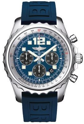 Model: A2336035/C833-RS - Case,; MATERIALSTAINLESS STEEL = [Case Diameter46], [Case Thickness16mm], [BezelBi-Directional Rotating], [Case BackSolid], [Water Resistant200 Meters/660 Feet], [CrystalScratch Resistant Sapphire], Dial,; COLORGUN BLUE WITH BLACK SUB-DIAL CHRONOGRAPH, LUMINESCENT HANDS AND MARKERS, DATE BETWEEN 4 AND 5 = Movement,; TYPEAUTOMATIC SELF WINDING BREITLING CALIBRE 23, APPROX. 42HR POWER RESERVE = Band,; CLASPTANG BUCKLE = [TypeBlue Diver Pro ll Rubber], (Usually ships in 2 to 4 weeks.)