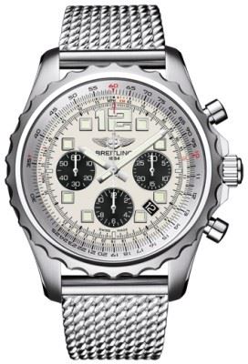 Model: A2336035/G718-SS - CASE = [Material:Stainless Steel], [Case Diameter:46], [Case Thickness:16mm], [Bezel:Bi-Directional Rotating], [Case Back:Solid], [Water Resistant:200 Meters/660 Feet], [Crystal:Scratch Resistant Sapphire], DIAL = [Color:Stratus Silver with Black Sub-Dial Chronograph, Luminescent Hands and Markers, Date Between 4 and 5], MOVEMENT = [Type:Automatic Self Winding Breitling Calibre 23, Approx. 42hr Power Reserve], BAND = [Clasp:Deployment Buckle], [Type:Aero Classic Mesh Stainless Steel], (Usually ships in 1 to 2 weeks.)