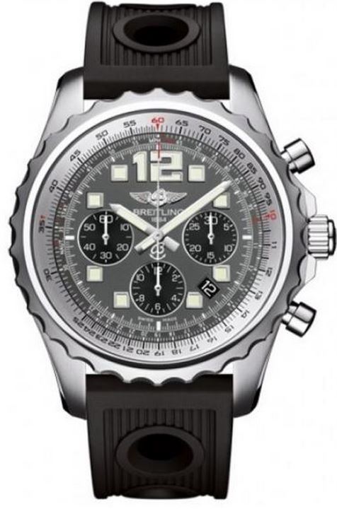 Model: A2336035/F555-201S - CASE = [Material:Stainless Steel], [Case Diameter:46], [Case Thickness:16mm], [Bezel:Bi-Directional Rotating], [Case Back:Solid], [Water Resistant:200 Meters/660 Feet], [Crystal:Scratch Resistant Sapphire], DIAL = [Color:Tungsten Grey with Black Sub-Dial Chronograph, Luminescent Hands and Markers, Date Between 4 and 5], MOVEMENT = [Type:Automatic Self Winding Breitling Calibre 23, Approx. 42hr Power Reserve], BAND = [Clasp:Deployment Buckle], [Type:Black Ocean Racer Rubber], (Usually ships in 2 to 4 weeks.)