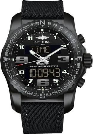 Model: VB501022/BD41-104W - CASE = [Material:Black Titanium], [Case Diameter:46], [Bezel:Uni-Directional Rotating], [Case Back:Solid], [Water Resistant:100 Meters - 330 Feet], [Crystal:Scratch Resistant Sapphire], DIAL = [Color:Black], MOVEMENT = [Type:Quartz Chronometer], [Crown:Screw Down], BAND = [Clasp:Tang], [Type:Black Fabric],  (Usually ships in 1 to 2 weeks.)