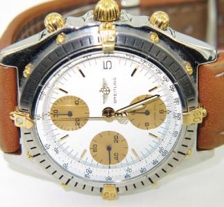 Breitling Stainless Steel Chronograph Brown Leather Strap Mens watch.The total watch's weight is 98.4 grams.The measurements of watch head is 36 x 39 mm and 10 mm thick.The length of watch: 8.5".Case Type: Stainless steel.Complications: Swiss quartz, Chronograph.water Resistant.swiss made