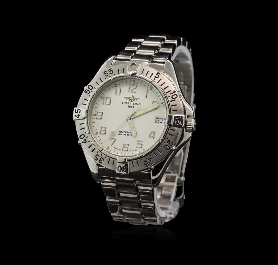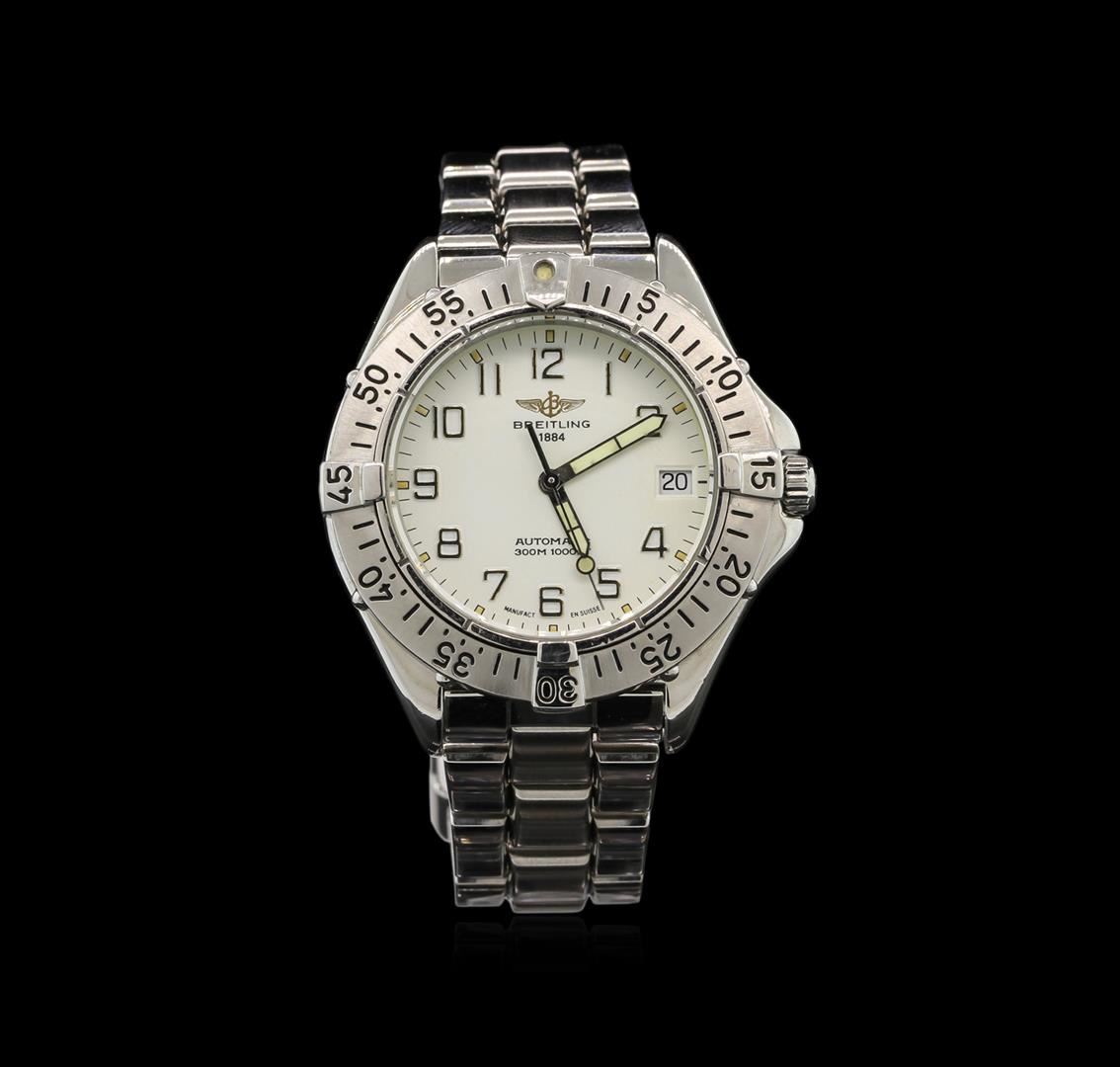 One Breitling Stainless Steel Colt Watch. Case: Stainless steel. Crown: Screw-down (threaded). Bezel: Uni-directional. Dial: White color with Arabic applied numerals. Luminous hour, minute, and second hands. Bracelet: Stainless steel.