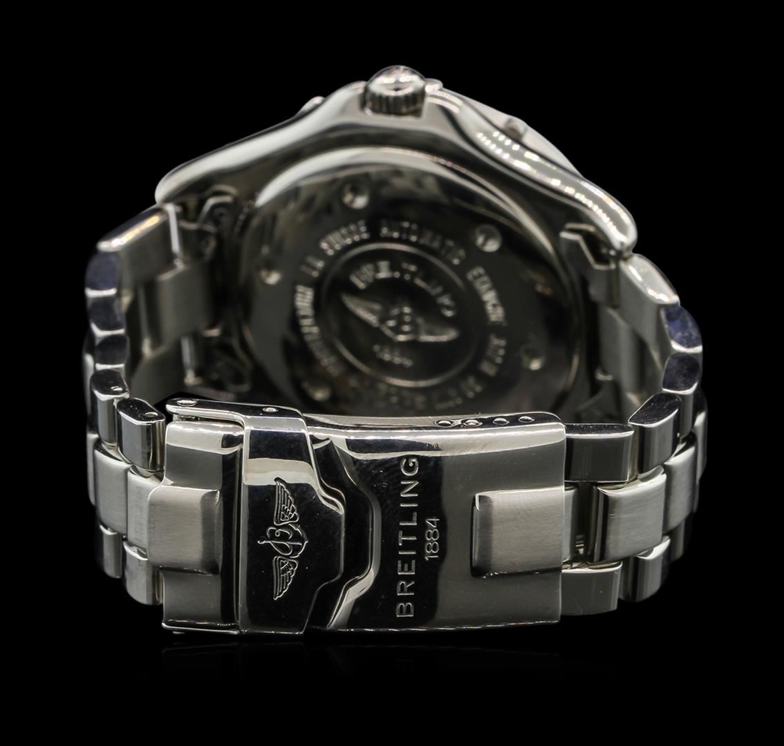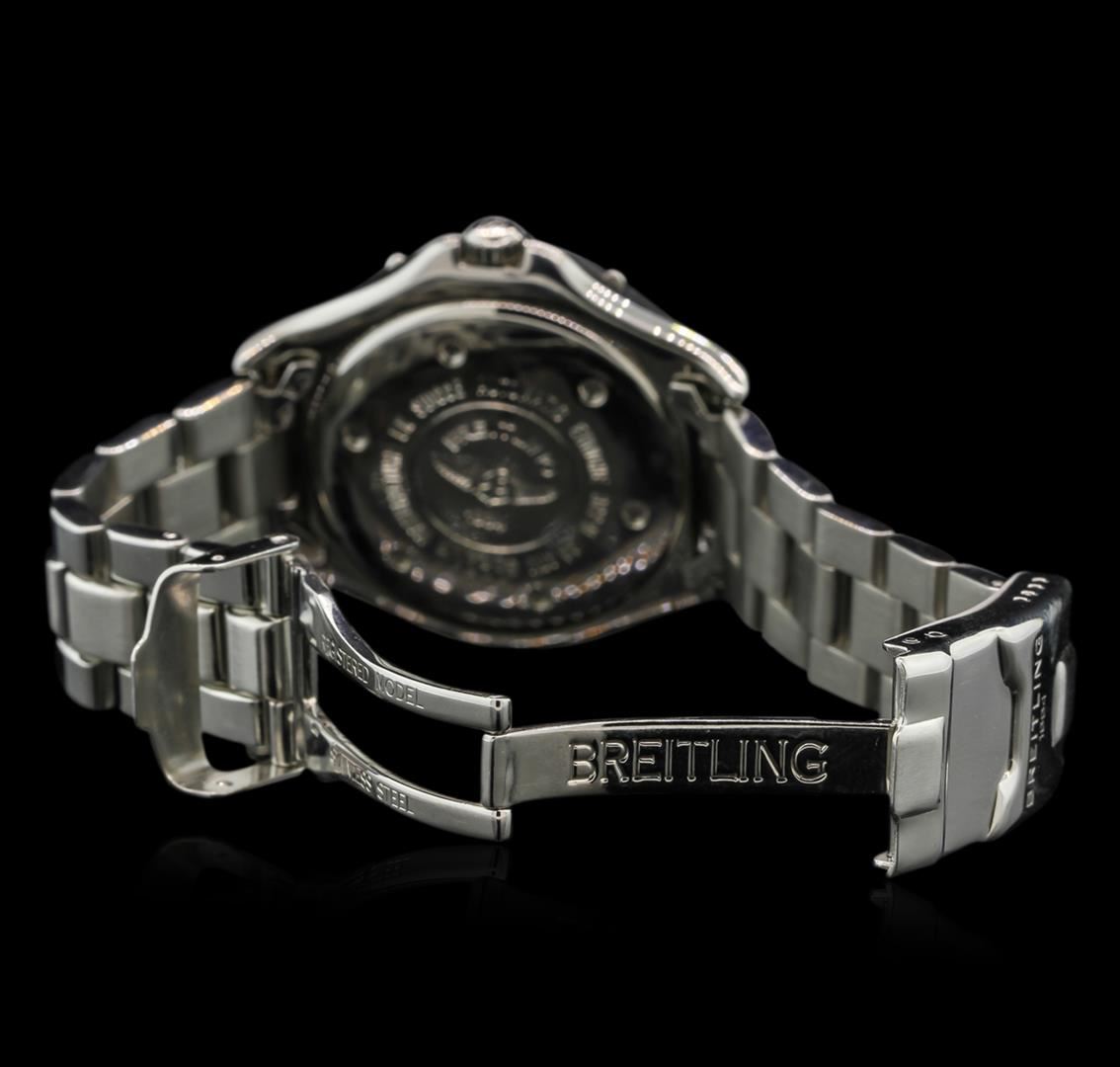 One Breitling Stainless Steel Colt Watch. Case: Stainless steel. Crown: Screw-down (threaded). Bezel: Uni-directional. Dial: White color with Arabic applied numerals. Luminous hour, minute, and second hands. Bracelet: Stainless steel.