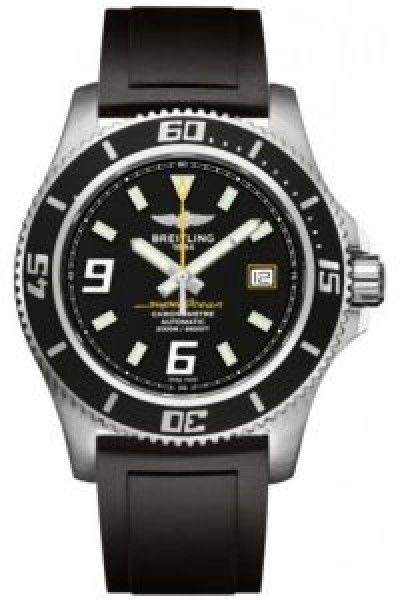 Model: A1739102/BA78-134S - CASE = [Material:Brushed and Polished Stainless Steel], [Case Diameter:44], [Bezel:Uni-Directional Divers, Engraved with Arabic Numerals], [Case Back:Solid], [Water Resistant:2000 Meters - 6000 Feet], [Crystal:Scratch Resistant Sapphire], DIAL = [Color:Black with Abyss Yellow Accents, Luminescent Index and Arabic Markers, Date at 3], MOVEMENT = [Type:Breitling Calibre 17 Automatic Self Winding], [Crown:Screw Down], BAND = [Clasp:Deployment], [Type:Black DPT2 Rubber], (Usually ships in 1 to 2 weeks.)