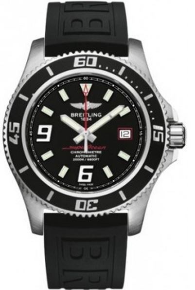 Model: A1739102/BA76-152S - CASE = [Material:Brushed and Polished Stainless Steel], [Case Diameter:44], [Bezel:Uni-Directional Divers, Engraved with Arabic Numerals], [Case Back:Solid], [Water Resistant:2000 Meters - 6000 Feet], [Crystal:Scratch Resistant Sapphire], DIAL = [Color:Black with Abyss Red Accents, Luminescent Index and Arabic Markers, Date at 3], MOVEMENT = [Type:Breitling Calibre 17 Automatic Self Winding], [Crown:Screw Down], BAND = [Clasp:Tang Buckle], [Type:Black Diver Pro ll Rubber], (Usually ships in 1 to 2 weeks.)