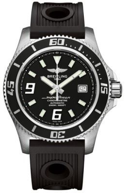 Model: A1793102/BA77-PRRS - CASE = [Material:Stainless Steel], [Case Diameter:44], [Bezel:Uni-Directional Divers, Engraved with Arabic Numerals], [Case Back:Solid], [Water Resistant:2000 Meters - 6000 Feet], [Crystal:Scratch Resistant Sapphire], DIAL = [Color:Black with Abyss White Accents, Luminescent Index and Arabic Markers, Date at 3], MOVEMENT = [Type:Breitling Calibre 17 Automatic Self Winding], [Crown:Screw Down], BAND = [Clasp:Deployment], [Type:Black Ocean Racer Rubber], (Usually ships in 1 to 2 weeks.)