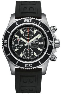 Model: A1334102/BA84-RS - CASE = [Material:Stainless Steel], [Case Diameter:44], [Bezel:Uni-Directional Divers, Engraved with Arabic Numerals], [Case Back:Solid], [Water Resistant:500 Meters/1650 Feet], [Crystal:Scratch Resistant Sapphire], DIAL = [Color:Black Chronograph with Abyss White Accents, Luminescent Index Markers, Date at 3], MOVEMENT = [Type:Breitling Calibre 13 Automatic Self Winding], [Crown:Screw Down], BAND = [Clasp:Tang Buckle], [Type:Black Diver Pro ll Rubber], (Usually ships in 1 to 2 weeks.)
