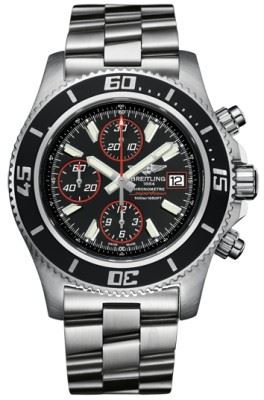 Model: A1334102/BA81 - CASE = [Material:Stainless Steel], [Case Diameter:44], [Bezel:Uni-Directional Divers, Engraved with Arabic Numerals], [Case Back:Solid], [Water Resistant:500 Meters/1650 Feet], [Crystal:Scratch Resistant Sapphire], DIAL = [Color:Black Chronograph with Abyss Red Accents, Luminescent Index Markers, Date at 3], MOVEMENT = [Type:Breitling Calibre 13 Automatic Self Winding], [Crown:Screw Down], BAND = [Clasp:Deployment], [Type:Stainless Steel], (Usually ships in 1 to 2 weeks.)