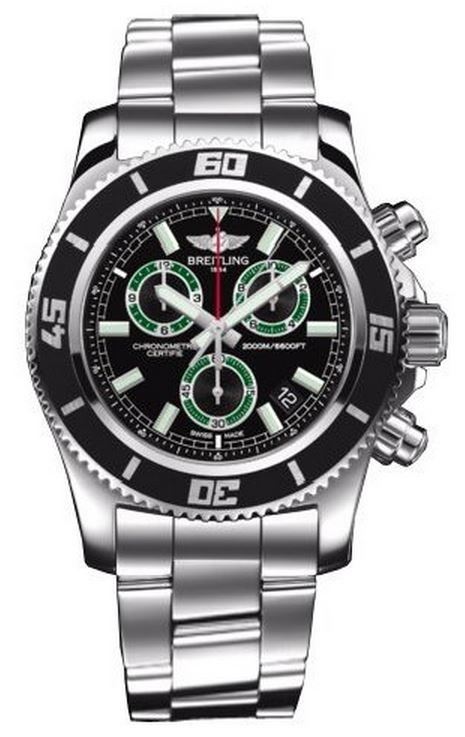Model: A73310A8/BB75-160A - CASE = [Material:Stainless Steel], [Case Diameter:46], [Case Thickness:19.1mm], [Bezel:Uni-Directional Rotating], [Case Back:Solid], [Water Resistant:2000 Meters/6000 Feet], [Crystal:Scratch Resistant Sapphire], DIAL = [Color:Volcano Black Chronograph with Green Subdials], MOVEMENT = [Type:Battery Powered Quartz Chronograph-Chronometer], BAND = [Clasp:Double Locking Foldover], [Type:Polished Stainless Steel], (Usually ships in 1 to 2 weeks.)