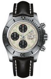 Model: A13341C3/G782-435X - CASE = [Material:Stainless Steel], [Case Diameter:44], [Bezel:Unidirectional rotating], [Water Resistant:500 Meters - 1650 Feet], [Crystal:Scratch Resistant Sapphire],; DIAL = [Color:Silver],; MOVEMENT = [Type:Chronograph Automatic Self Winding], [Crown:Screw Down],; BAND = [Clasp:Pin & Buckle], [Type:Leather], (Usually ships in 2 to 4 weeks.)