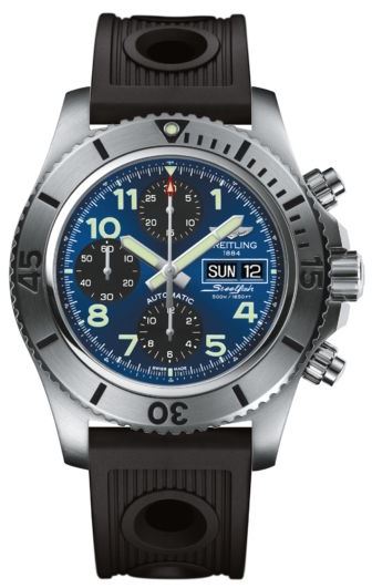 Model: A13341C3/C893-200S - CASE = [Material:Stainless Steel], [Case Diameter:44], [Bezel:Uni-Directional Rotating], [Water Resistant:500 Meters - 1650 Feet], [Crystal:Scratch Resistant Sapphire], DIAL = [Color:Blue with Black Subdials], MOVEMENT = [Type:Chronograph Automatic Self Winding], [Crown:Screw Down], BAND = [Clasp:Deployment], [Type:Black Rubber], (Usually ships in 2 to 4 weeks.)