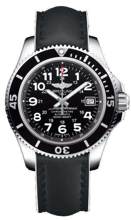 Model: A17365C9/BD67-222X - CASE = [Material:Stainless Steel], [Case Diameter:42], [Case Thickness:13.30mm], [Bezel:Uni-Directional Rotating], [Case Back:Solid], [Water Resistant:500 Meters - 1650 Feet], [Crystal:Scratch Resistant Sapphire],; DIAL = [Color:Black],; MOVEMENT = [Type:Automatic Self Winding], [Crown:Screw Down],; BAND = [Clasp:Tang], [Type:Black and White Superocean Leather], (Usually ships in 1 to 2 weeks.)