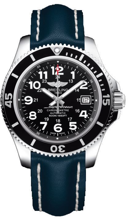 Model: A17365C9/BD67-115X - CASE = [Material:Stainless Steel], [Case Diameter:42], [Case Thickness:13.30mm], [Bezel:Uni-Directional Rotating], [Case Back:Solid], [Water Resistant:500 Meters - 1650 Feet], [Crystal:Scratch Resistant Sapphire], DIAL = [Color:Black], MOVEMENT = [Type:Automatic Self Winding], [Crown:Screw Down], BAND = [Clasp:Folding], [Type:Blue Leather], (Usually ships in 1 to 2 weeks.)