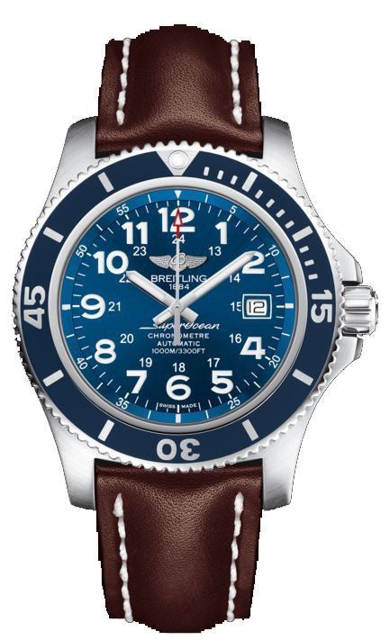 Model: A17392D8/C910-438X - CASE = [Material:Stainless Steel], [Case Diameter:44], [Case Thickness:14.20mm], [Bezel:Uni-Directional Rotating], [Case Back:Solid], [Water Resistant:1000 Meters - 3300 Feet], [Crystal:Scratch Resistant Sapphire],; DIAL = [Color:Blue],; MOVEMENT = [Type:Automatic Self Winding], [Crown:Screw Down],; BAND = [Clasp:Folding], [Type:Brown Leather], (Usually ships in 1 to 2 weeks.)