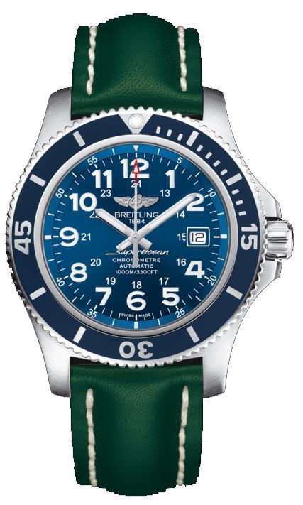 Model: A17392D8/C910-189X - Case,; MATERIALSTAINLESS STEEL = [Case Diameter44], [Case Thickness14.20mm], [BezelUni-Directional Rotating], [Case BackSolid], [Water Resistant1000 Meters - 3300 Feet], [CrystalScratch Resistant Sapphire], Dial,; COLORBLUE = Movement,; TYPEAUTOMATIC SELF WINDING = [CrownScrew Down], Band,; CLASPTANG = [TypeGreen Leather], (Usually ships in 1 to 2 weeks.)