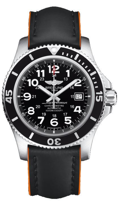 Model: A17392D7/BD68-230X - CASE = [Material:Stainless Steel], [Case Diameter:44], [Case Thickness:14.20mm], [Bezel:Uni-Directional Rotating], [Case Back:Solid], [Water Resistant:1002 Meters - 3300 Feet], [Crystal:Scratch Resistant Sapphire], DIAL = [Color:Black], MOVEMENT = [Type:Automatic Self Winding], [Crown:Screw Down], BAND = [Clasp:Tang], [Type:Black And Orange Superocean Leather], (Usually ships in 1 to 2 weeks.)