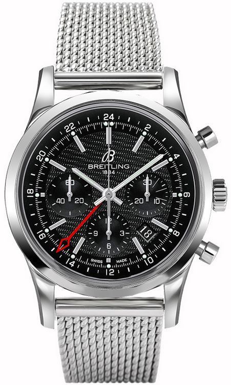 Model: AB045112/BC67-154A - Case,; MATERIALSTAINLESS STEEL = [Case Diameter43], [Case Thickness16.20mm], [BezelFixed], [Case BackSee-thru Sapphire Crystal], [Water Resistant100 Meters/330 Feet], [CrystalScratch Resistant Sapphire], Dial,; COLORBLACK CHRONOGRAPH WITH GMT TIME ZONE = Movement,; TYPEAUTOMATIC SELF WINDING CHRONOGRAPH CALIBER BREITLING 04 WITH APPROX 70 HRS POWER RESERVE = Band,; CLASPDOUBLE LOCKING FOLDOVER = [TypePolished Stainless Steel], (Usually ships in 2 to 4 weeks.)