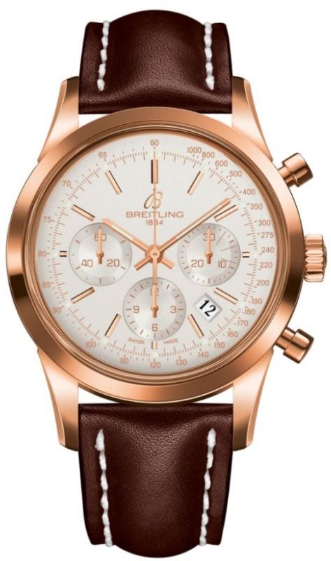 Model: RB015212/G738-LSD - CASE = [Material:18kt Rose Gold], [Case Diameter:43], [Case Thickness:14.35mm], [Bezel:Fixed], [Case Back:See-thru Sapphire Crystal], [Water Resistant:100 Meters/330 Feet], [Crystal:Scratch Resistant Sapphire],; DIAL = [Color:Silver Chronograph],; MOVEMENT = [Type:Automatic Self Winding Chronograph],; BAND = [Clasp:Deployment], [Type:Brown Calfskin Leather], (Usually ships in 1 to 2 weeks.)