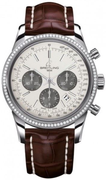 Model: AB015253/G724-CROCD - CASE = [Material:Stainless Steel], [Case Diameter:43], [Case Thickness:14.35mm], [Bezel:Fixed with Diamonds], [Case Back:See-thru Sapphire Crystal], [Water Resistant:100 Meters/330 Feet], [Crystal:Scratch Resistant Sapphire], DIAL = [Color:Silver Chronograph], MOVEMENT = [Type:Automatic Self Winding Chronograph], BAND = [Clasp:Deployment], [Type:Brown Crocodile Leather], (Usually ships in 4 to 8 weeks.)