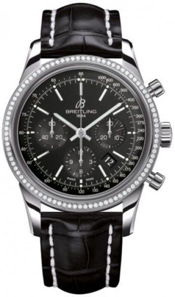 Model: AB015253/BA99-743P - CASE = [Material:Stainless Steel], [Case Diameter:43], [Case Thickness:14.35mm], [Bezel:Fixed with Diamonds], [Case Back:See-thru Sapphire Crystal], [Water Resistant:100 Meters/330 Feet], [Crystal:Scratch Resistant Sapphire], DIAL = [Color:Black Chronograph], MOVEMENT = [Type:Automatic Self Winding Chronograph], BAND = [Clasp:Deployment], [Type:Black Crocodile Leather], (Usually ships in 1 to 2 weeks.)