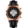 Model: RB0510U4/BB63-LST - CASE = [Material:18kt Rose Gold], [Case Diameter:46], [Bezel:Fixed], [Case Back:Solid], [Water Resistant:100 Meters/330 Feet], [Crystal:Scratch Resistant Sapphire], DIAL = [Color:Black Chronograph], MOVEMENT = [Type:Automatic Self Winding Chronograph], BAND = [Clasp:Tang], [Type:Black Calfskin Leather], (Usually ships in 1 to 2 weeks.)