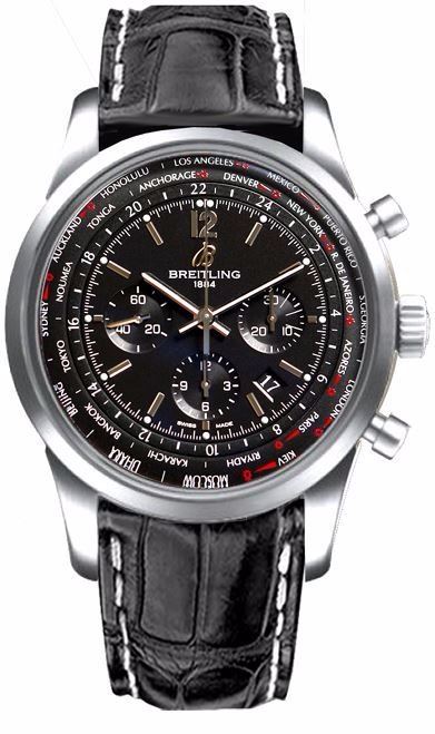 Model: AB0510U6/BC26-761P - CASE = [Material:Stainless Steel], [Case Diameter:46], [Bezel:Stainless Steel], [Case Back:Solid], [Water Resistant:100 Meters - 330 Feet], [Crystal:Scratch Resistant Sapphire],; DIAL = [Color:Black],; MOVEMENT = [Type:Chronograph Automatic Self Winding], [Crown:Screw Down],; BAND = [Clasp:Deployant Buckle], [Type:Alligator Leather], (Usually ships in 1 to 2 weeks.)