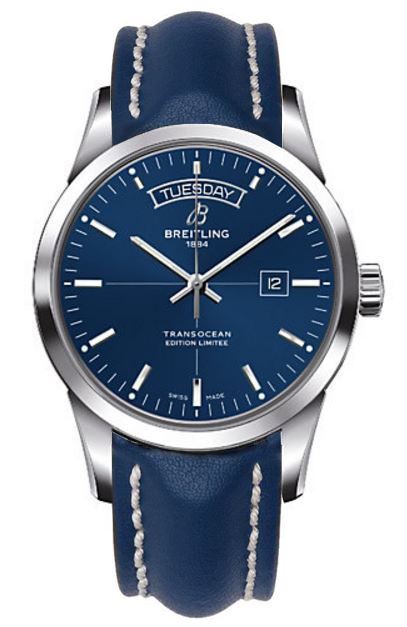 Model: A453109T/C921-105X - CASE = [Material:Stainless Steel], [Case Diameter:43], [Case Thickness:12.8mm], [Bezel:Fixed], [Case Back:Solid], [Water Resistant:100 Meters - 330 Feet], [Crystal:Scratch Resistant Sapphire], DIAL = [Color:Aurora Blue], MOVEMENT = [Type:Automatic Self Winding, 40 Hour Power Reserve, Day and Date], [Crown:Push In], BAND = [Clasp:Tang], [Type:Blue Alligator Leather], (In Stock - Ready to ship.)