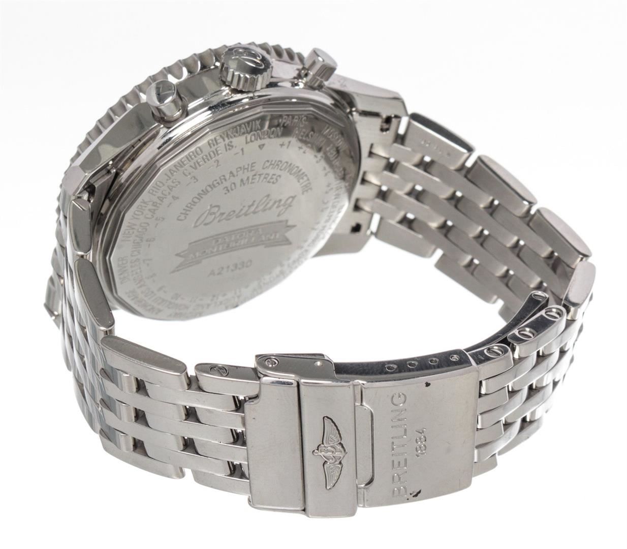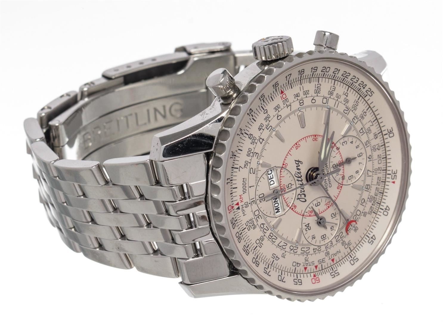 Breitling White Automatic Navitimer Watch with leather, silver-tone hardware.
