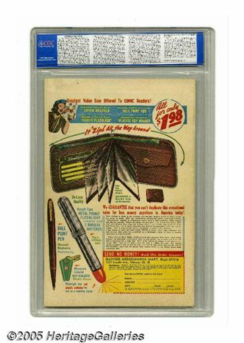 50. Auctioneer offers no opinion as to the validity of a grade assigned by any third-party grading service. Since we cannot examine C.G.A. encapsulated notes or Comics Guaranty Corporation (CGC) encapsulated comics, they are sold "as is" without our grading opinion, and may not be returned for any reason. Auctioneer shall not be liable for any patent or latent defect or controversy pertaining to or arising from any encapsulated collectible. In any such instance, purchaser's remedy, if any, shall be solely against the certification service certifying the collectible.