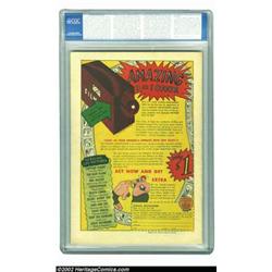 Brenda Starr Vol. 2, #5 (Four Star, 1948) CGC NM- 9.2 White pages. Newspaper reprints got this title started, but "good girl" artist Jack Kamen provided the delightful covers that gave the title new life and new readers. This is an extremely difficult run to put together in high grade, so if you're are going to do it, you'd better pick up this copy which is tied with the Mile High for the highest grade assigned by CGC. Overstreet 2002 NM 9.4 value = $715. Important notice: We expect to be auctioning lots at the rate of 200-250 per hour. Sometimes eBay Premier live bid software cannot keep up with that pace, so we strongly recommend that you place a realistic proxy bid now as insurance to avoid disappointment. Also please note that all Heritage/CAA lots purchased through eBay Premier carry a 20% Buyer's Premium. Please make sure you read the Terms and Conditions.