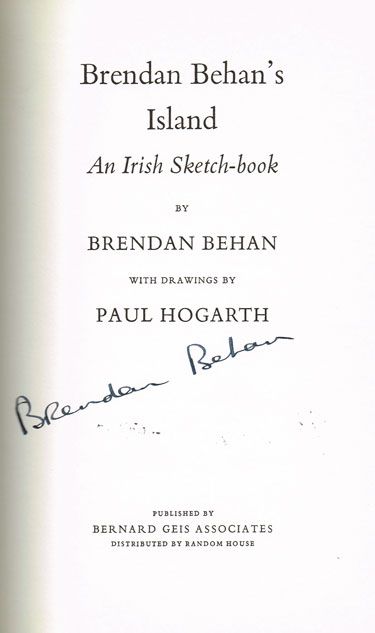 Original cloth boards with dust jacket, 192ppFirst edition of Brendan Behan's Island - An Irish Sketch-book by Brendan Behan with drawings by Paul Hogarth. Signed on title page by Behan.