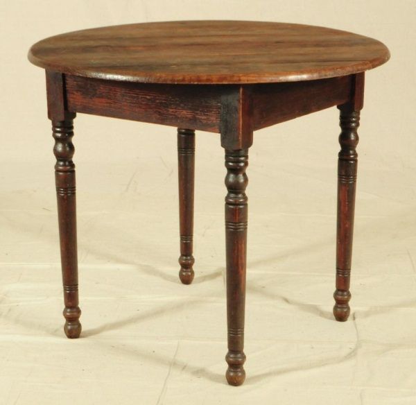 Round wood table Brenham, Texas with 4 legs measures 34 1/2" diameter x 29" tall.
