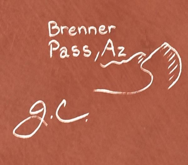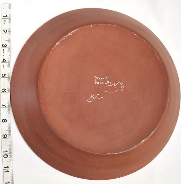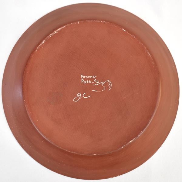 Brenner Pass, Arizona Pottery Shallow Bowl, measures 2''H x 12''D and is marked on the bottom, artist's initials J.C.