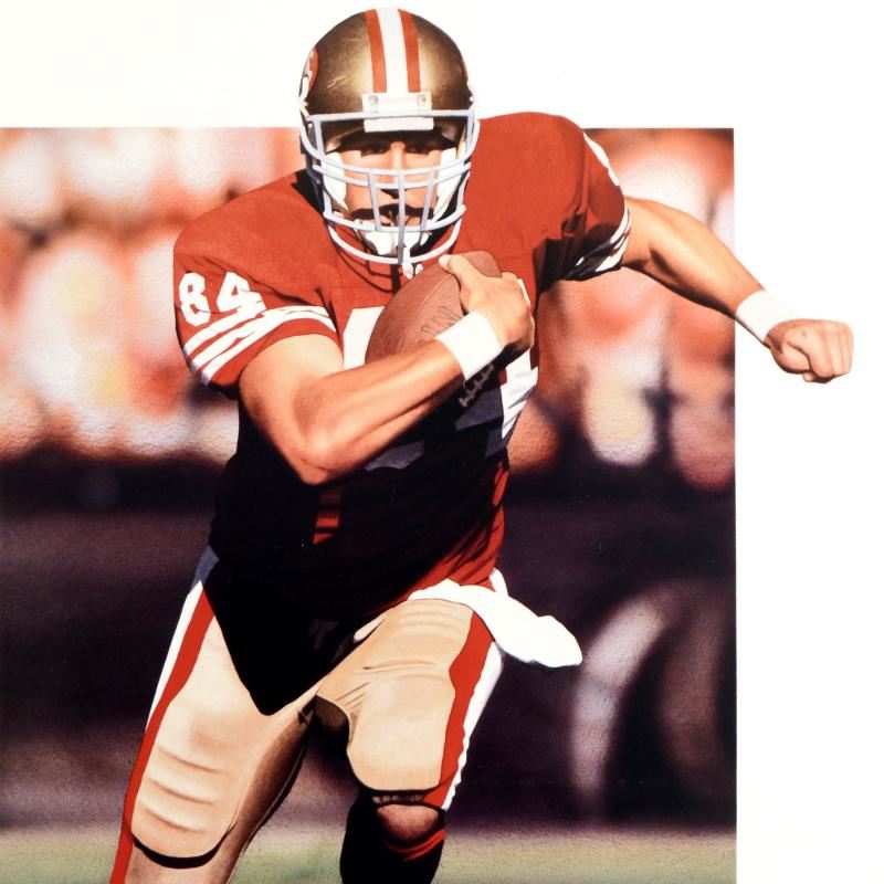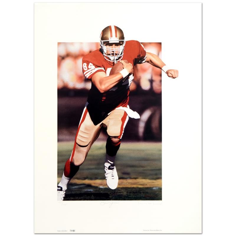 "Brent Jones" is a limited edition lithograph on paper dated (1994) by Daniel M. Smith, numbered and hand signed by both the artist and Brent Jones! Includes Certificate of Authenticity! Measures approx. 17.5" x 24" (with border), 12.5" x 18" (image).